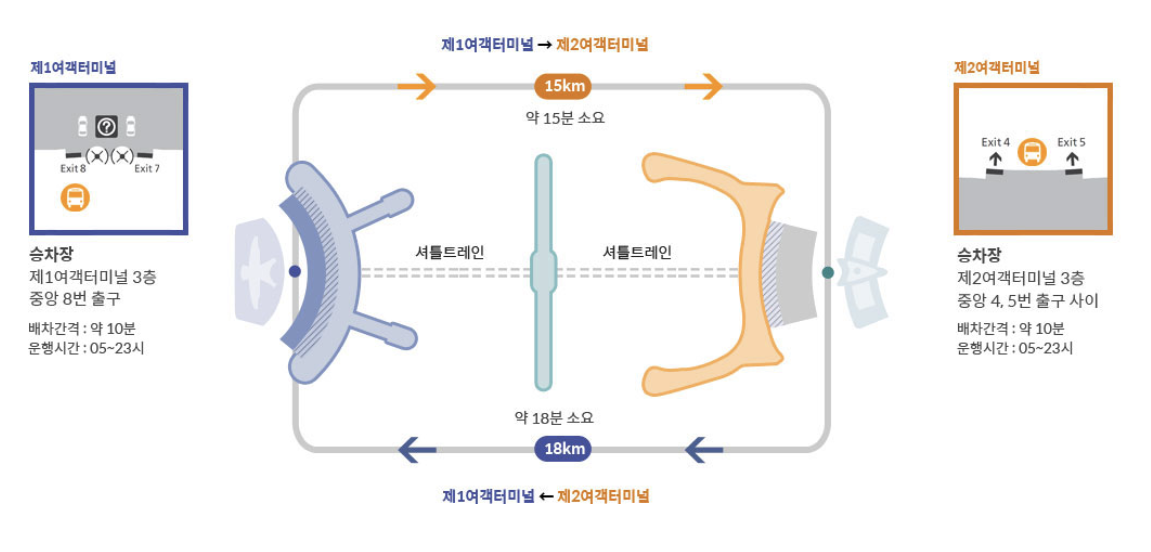 인천공항 1터미널과 2터미널은 거리가 꽤 있어서 걸어서 갈 수 없습니다. 공항셔틀이나 공항철도를 이용하여 이동할 수 있는데요. 각 교통수단을 이용하는 자세한 방법을 아래에서 확인해주세요.